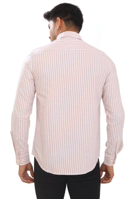 Bearberry Premium Oxford Cotton Striped Shirt – Soft Peach & Blue | 100% Cotton