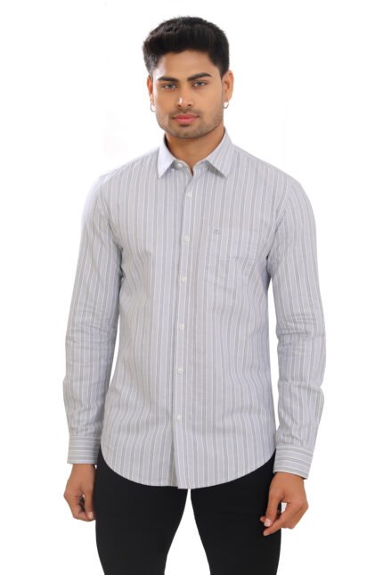 Bearberry Premium Oxford Cotton Striped Shirt – Classic Grey | 100% Cotton