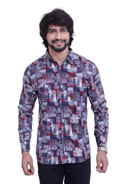 Bearberry Men’s 100% Cotton Printed Shirt – Full Sleeve Premium Casual Shirt