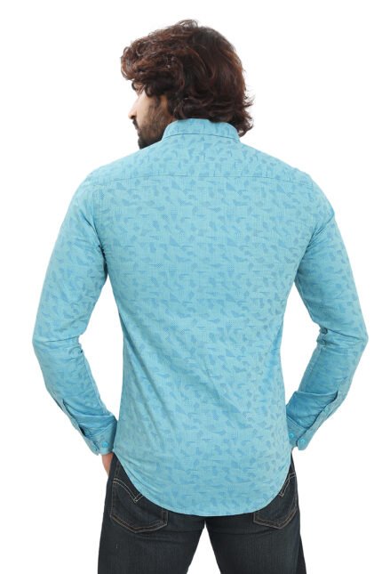 Bearberry Premium Aqua Blue Jacquard Cotton Shirt – 100% Cotton | Self Design | Slim Fit