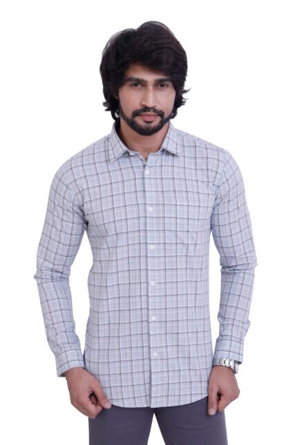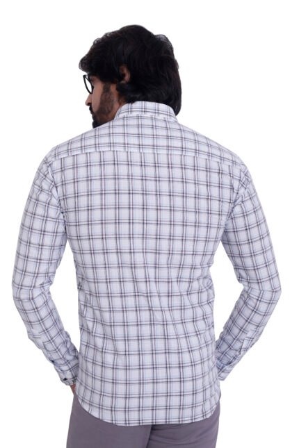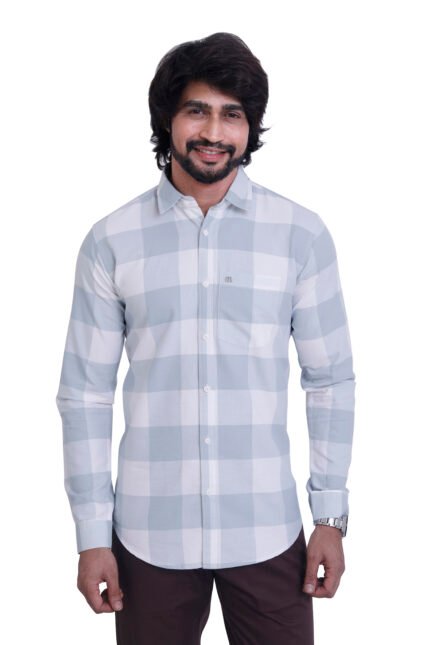 Bearberry Premium Light Grey Check Cotton Shirt – 100% Pure Cotton | Slim Fit Casual & Office Wear
