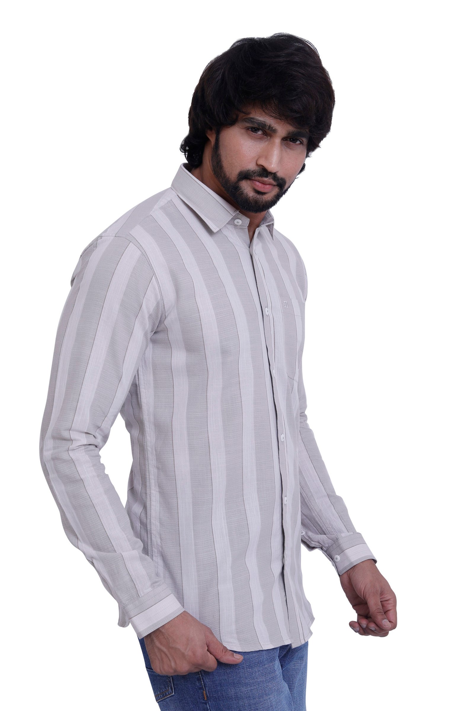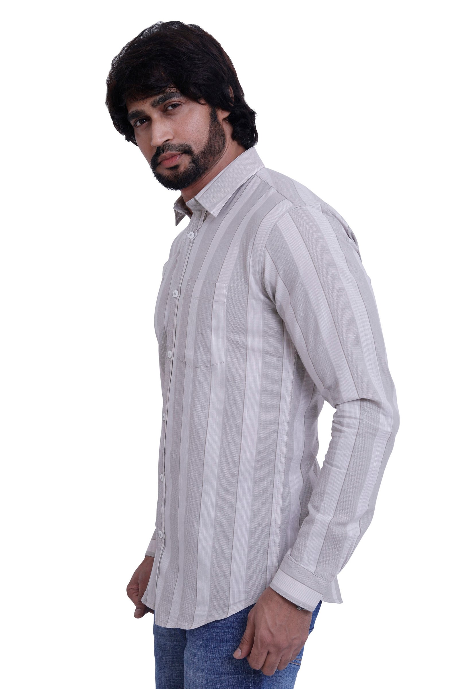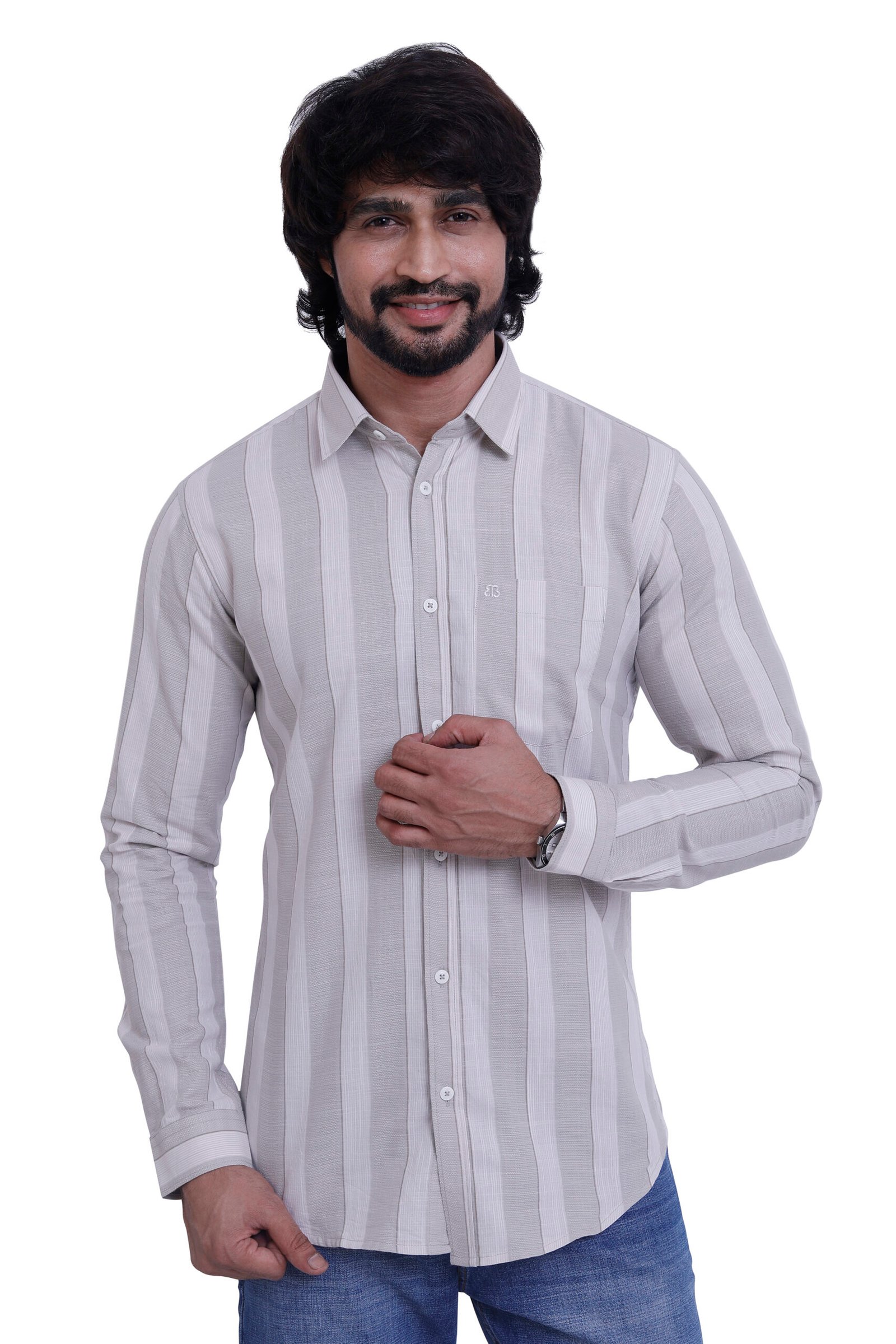 The neutral beige tone combined with classic stripes creates a versatile piece that pairs effortlessly with denim, chinos, or formal trousers. Finished with a classic collar, full sleeves, and premium stitching, this shirt reflects Bearberry’s signature blend of style, comfort, and quality.