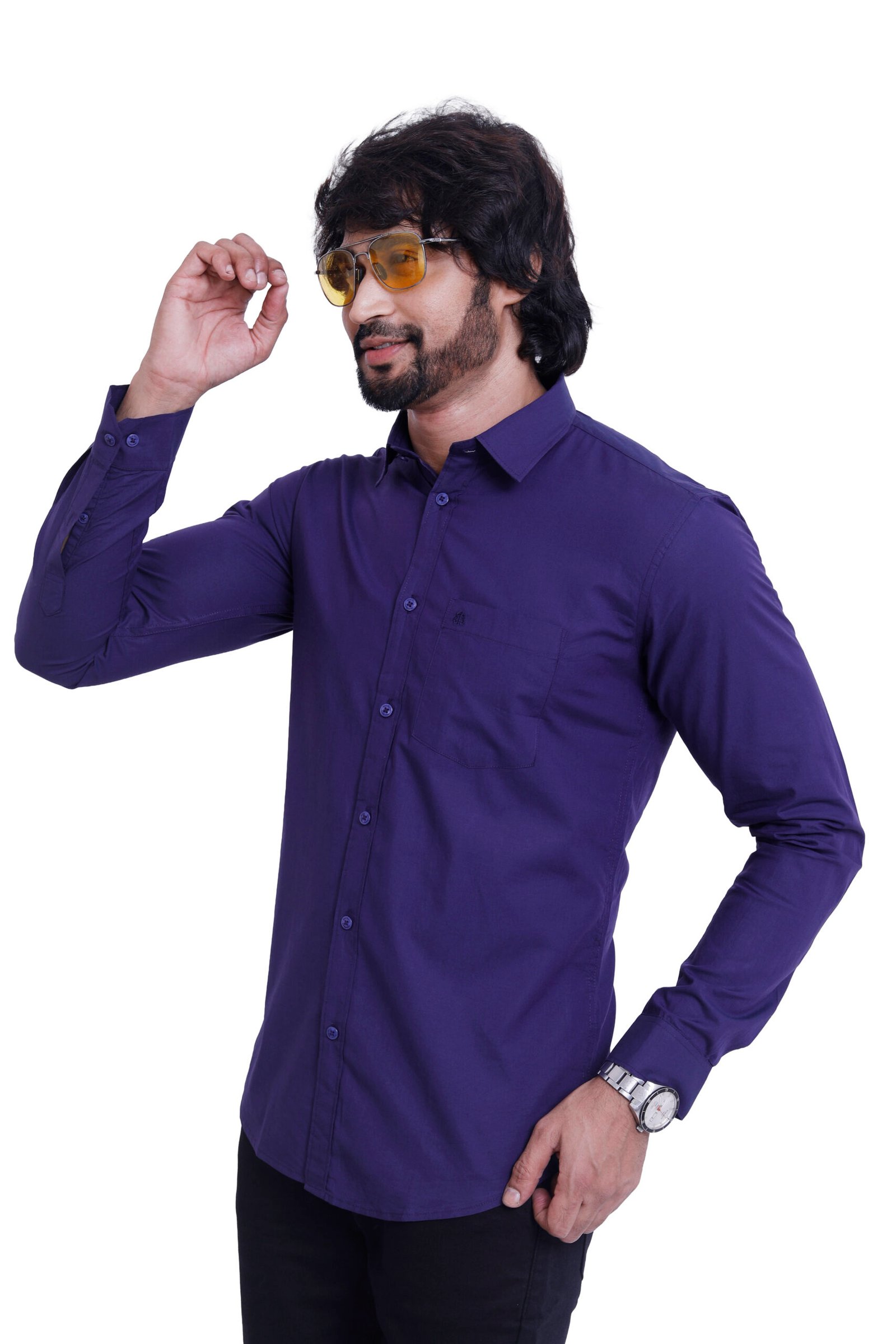 The rich purple tone adds a premium and sophisticated touch, making it perfect for evening outings, smart casual looks, and semi-formal occasions. Its minimal solid design keeps it timeless while allowing the color to stand out.