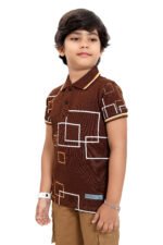The standout geometric square print design adds a contemporary fashion edge, making it perfect for kids who love stylish outfits. The classic polo collar with contrast tipping enhances the premium look, while the structured cut & stitch construction ensures a perfect fit and long-lasting wear.