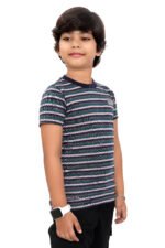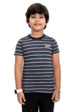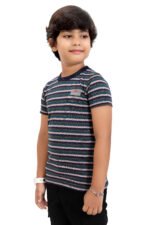 Stylish multicolor striped kids T-shirt made from soft jersey fabric for all-day comfort. Perfect for casual wear, playtime, and everyday styling.