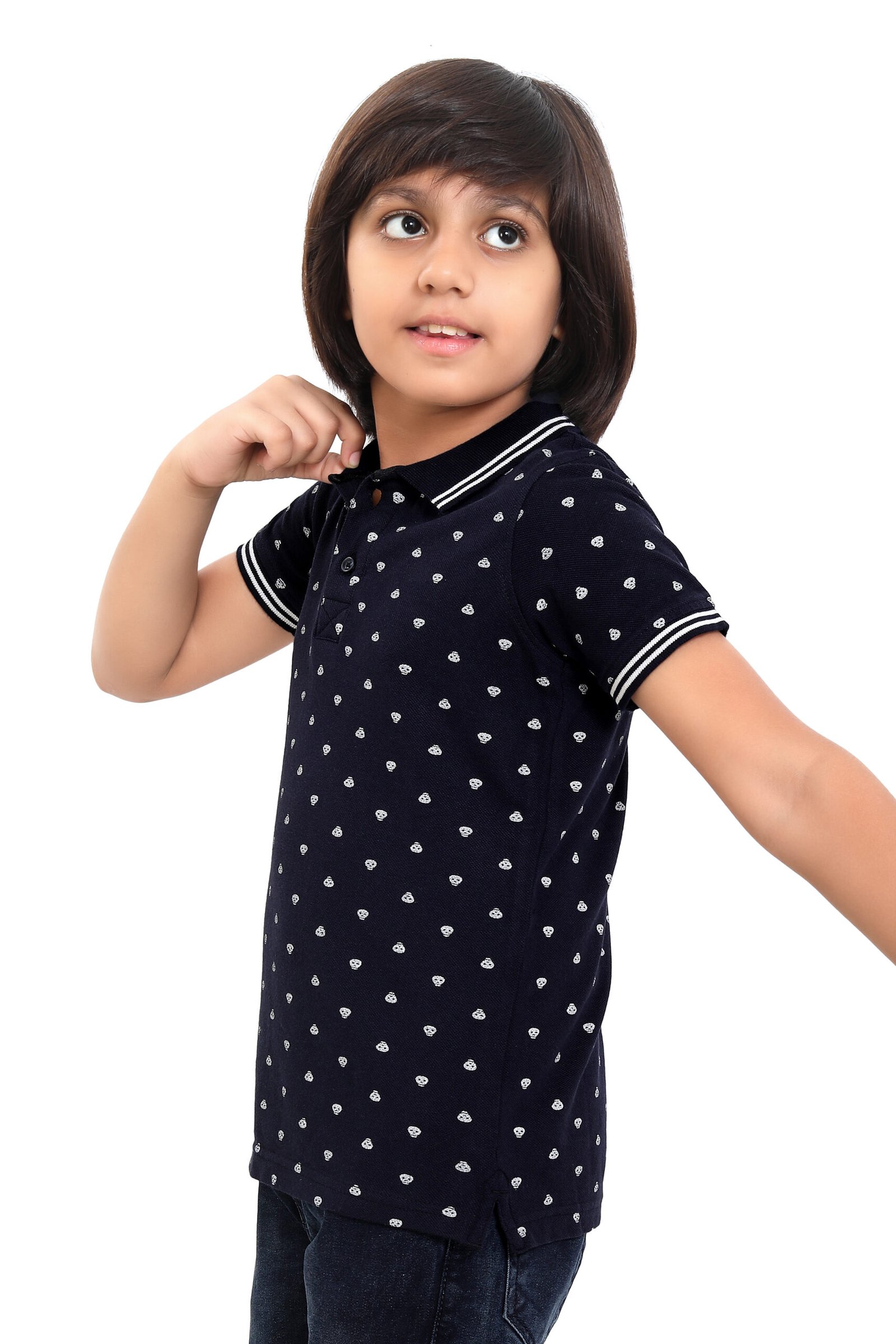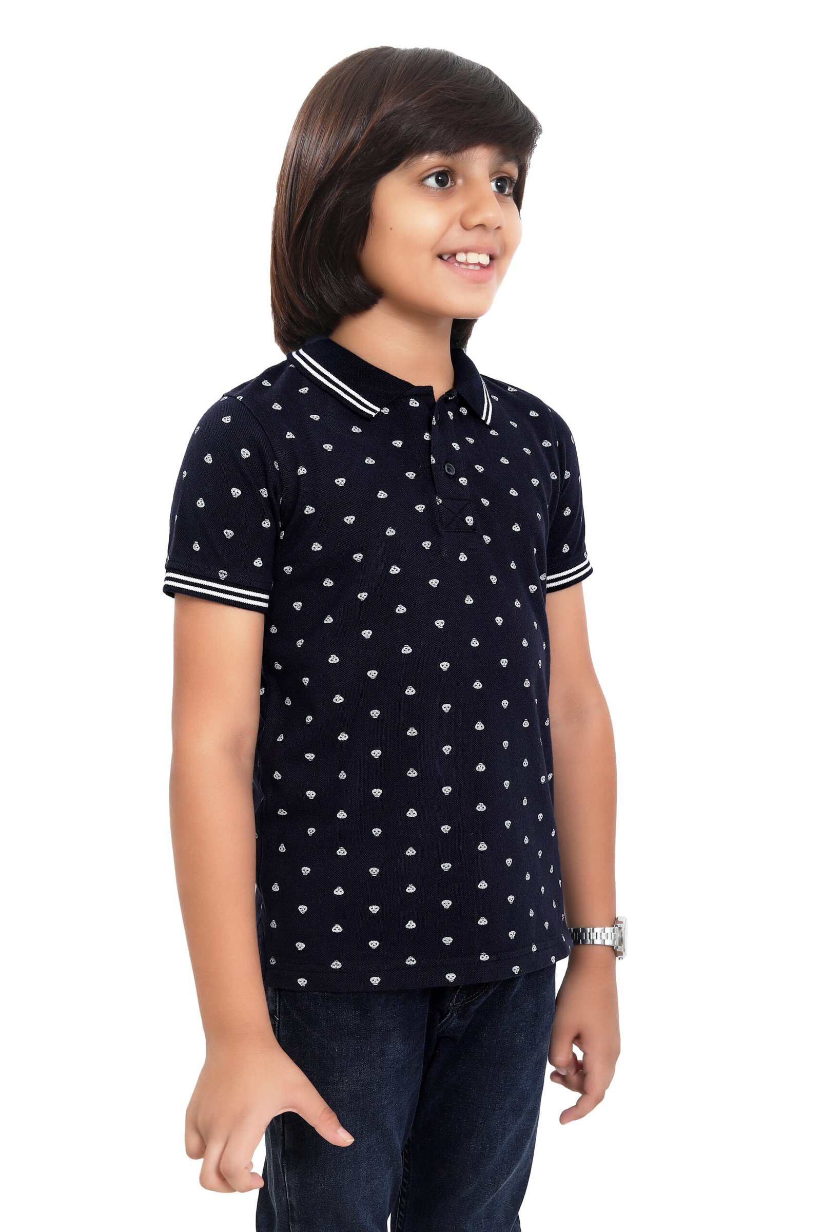Upgrade your child’s everyday style with this premium jersey polo T-shirt featuring a stylish all-over print. Made from soft, breathable fabric, it offers all-day comfort with a smart, trendy look.