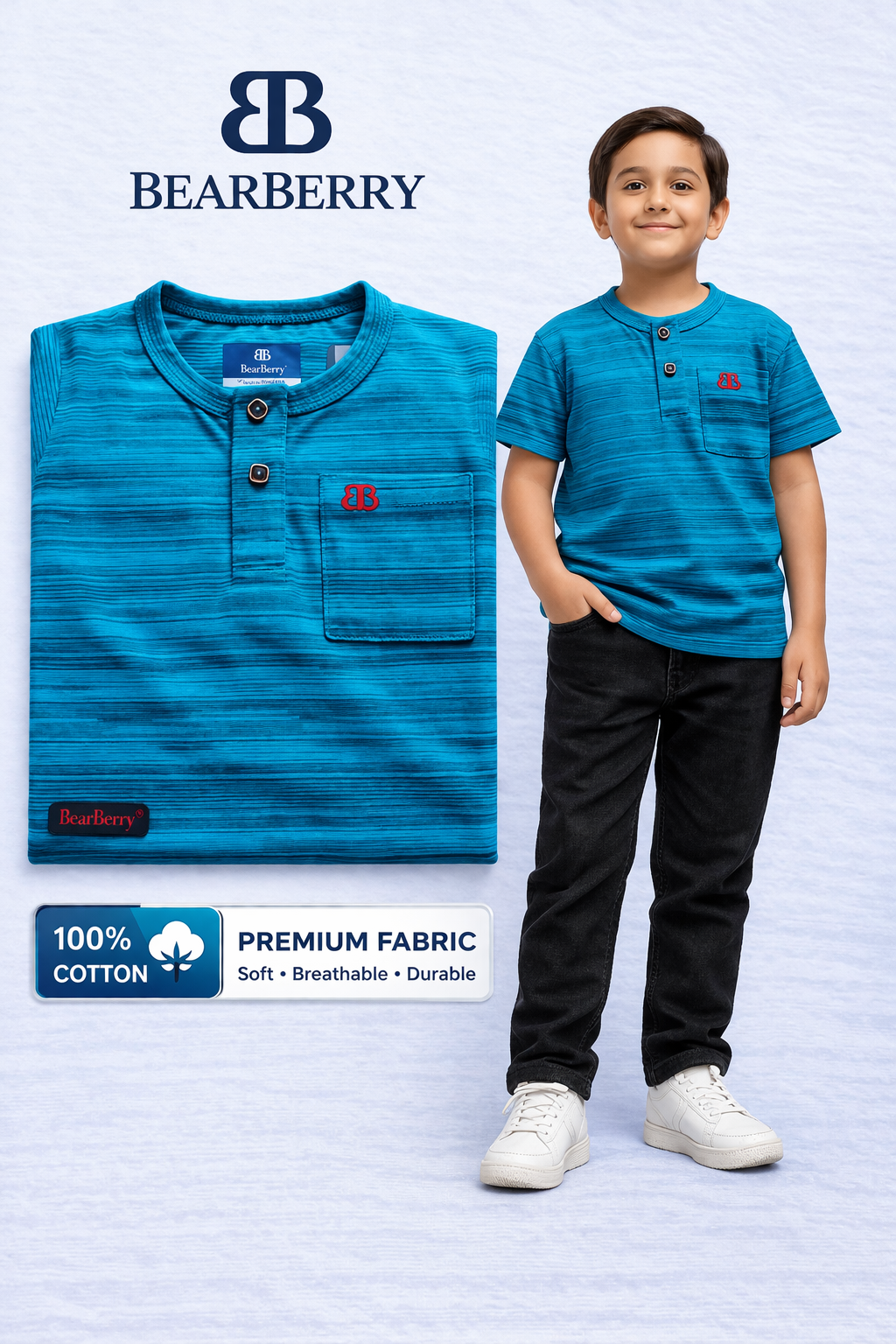 Be the first to review “Bearberry Kids Teal Blue Yarn-Dyed Cotton T-Shirt – Premium Soft Breathable Wear”