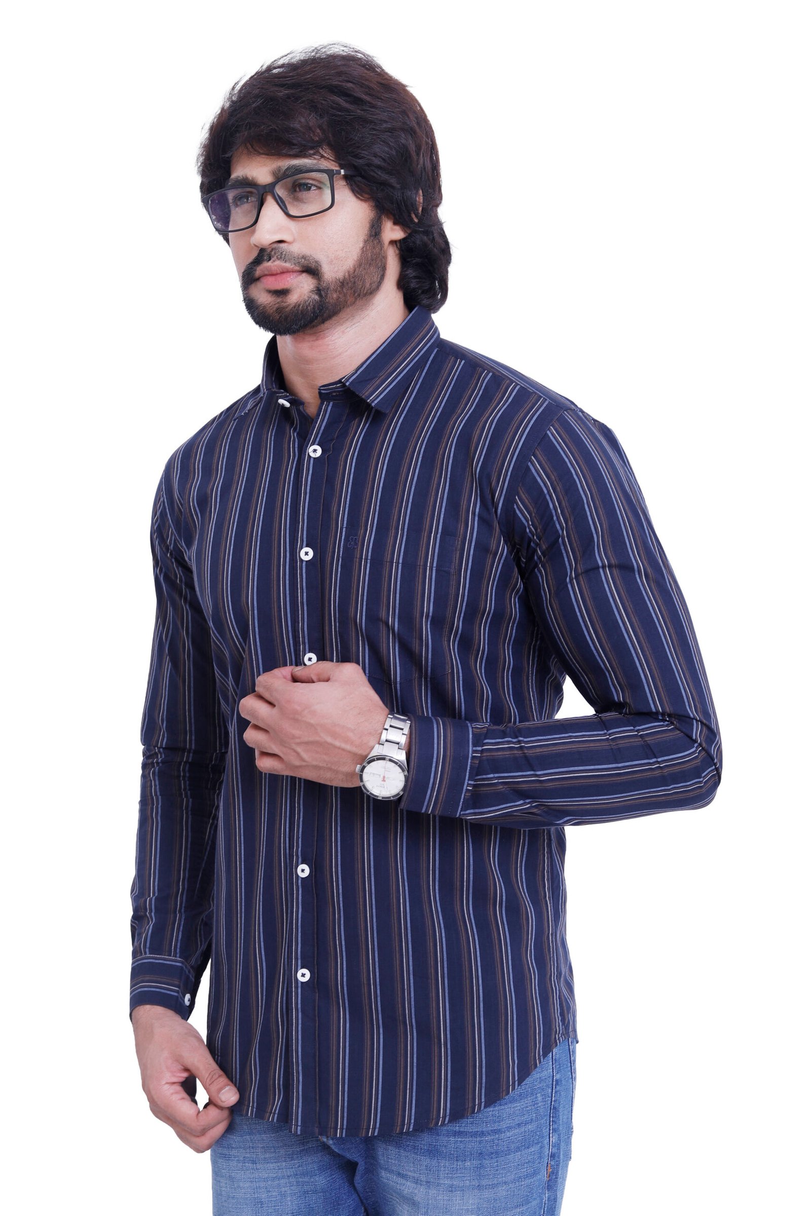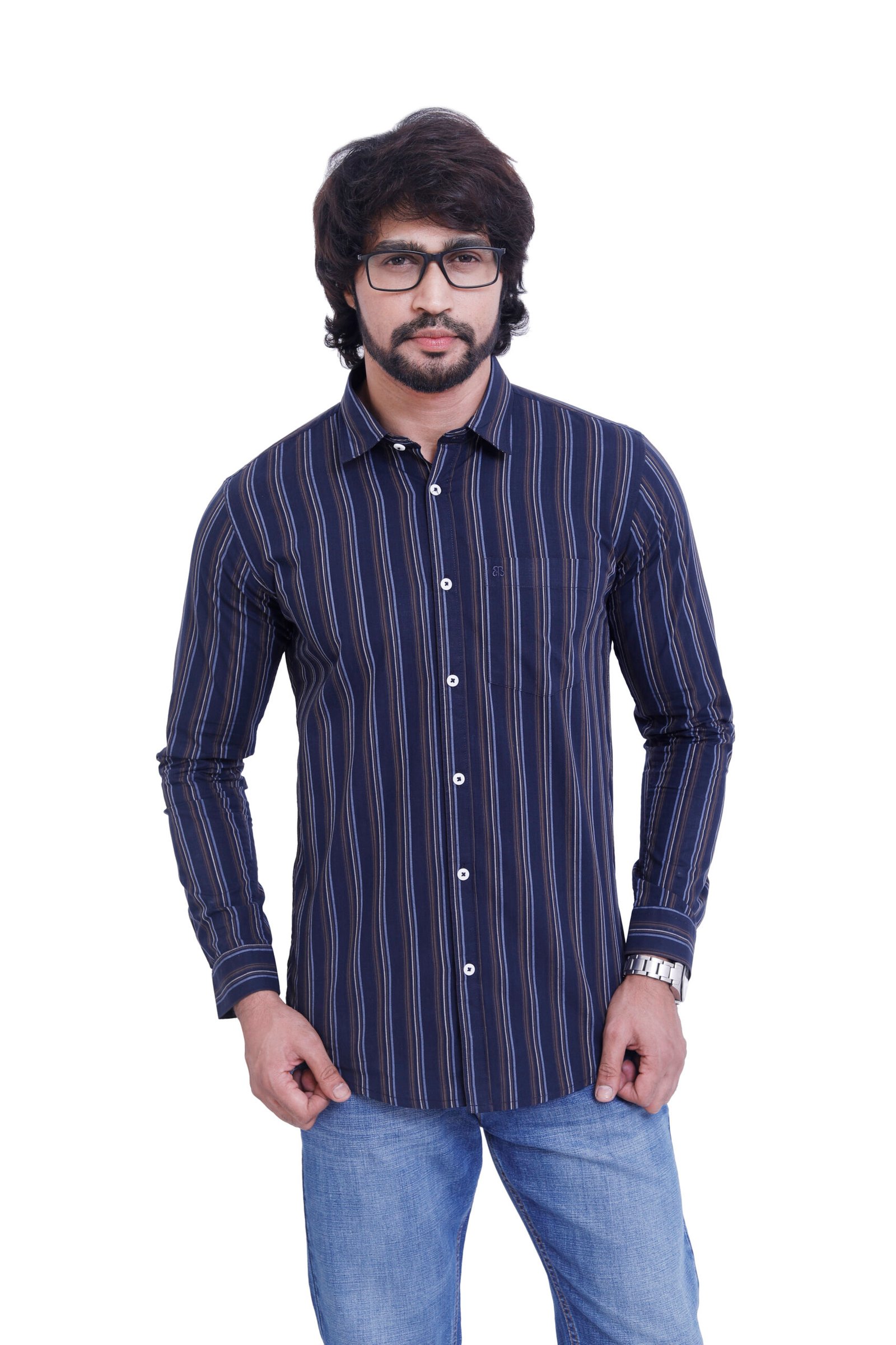 Step into refined style with the Bearberry Men’s 100% Cotton Yarn-Dyed Striped Shirt — designed for men who appreciate premium quality and timeless fashion.