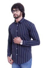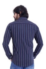 Bearberry Men’s 100% Cotton Yarn-Dyed Striped Shirt – Premium Navy Smart Casual Shirt