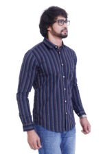 Crafted from 100% yarn-dyed cotton, this shirt ensures deep, long-lasting color that stays vibrant even after repeated washes. The elegant vertical stripe pattern adds a sleek and elongating effect, making it a perfect choice for both casual and semi-formal occasions.