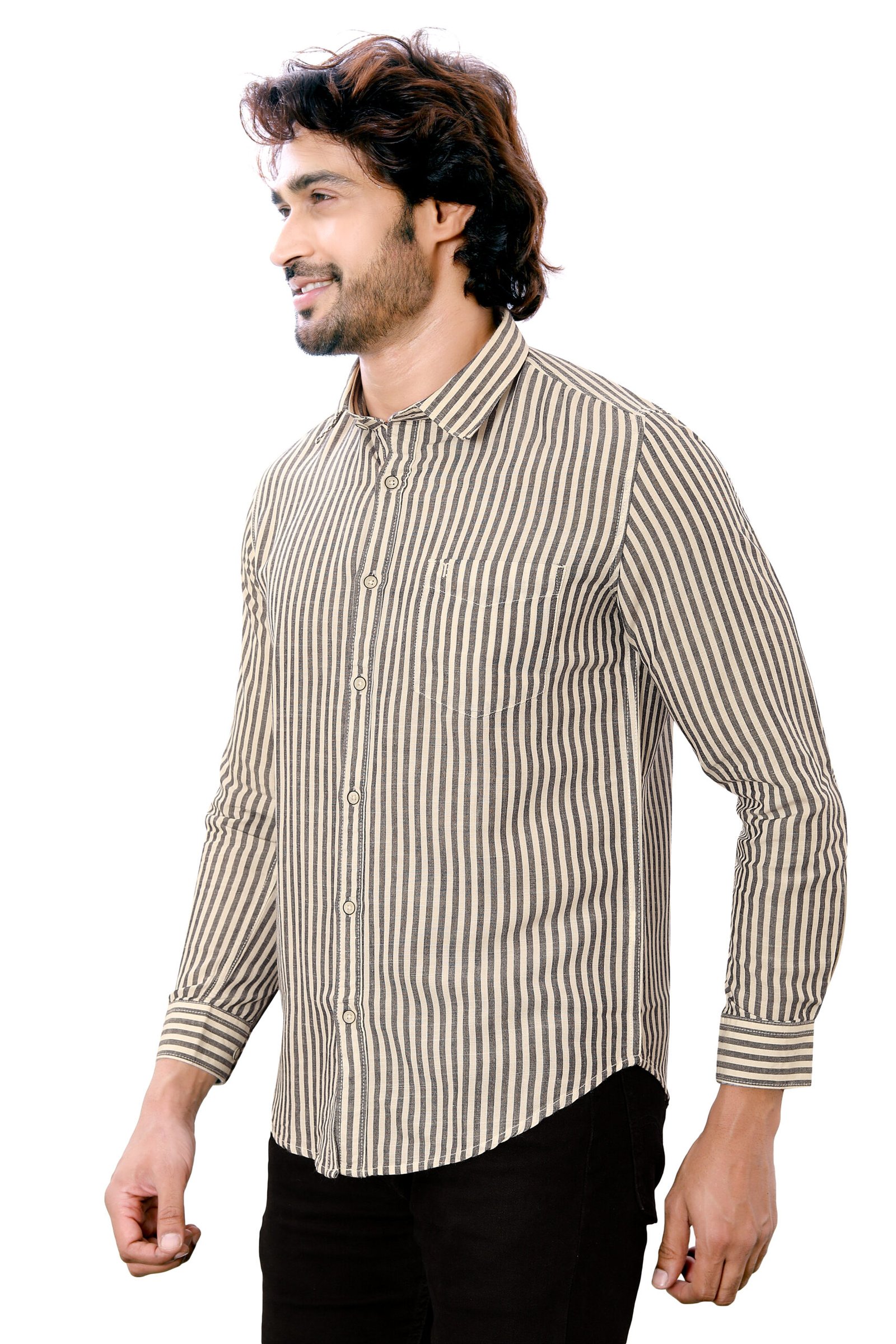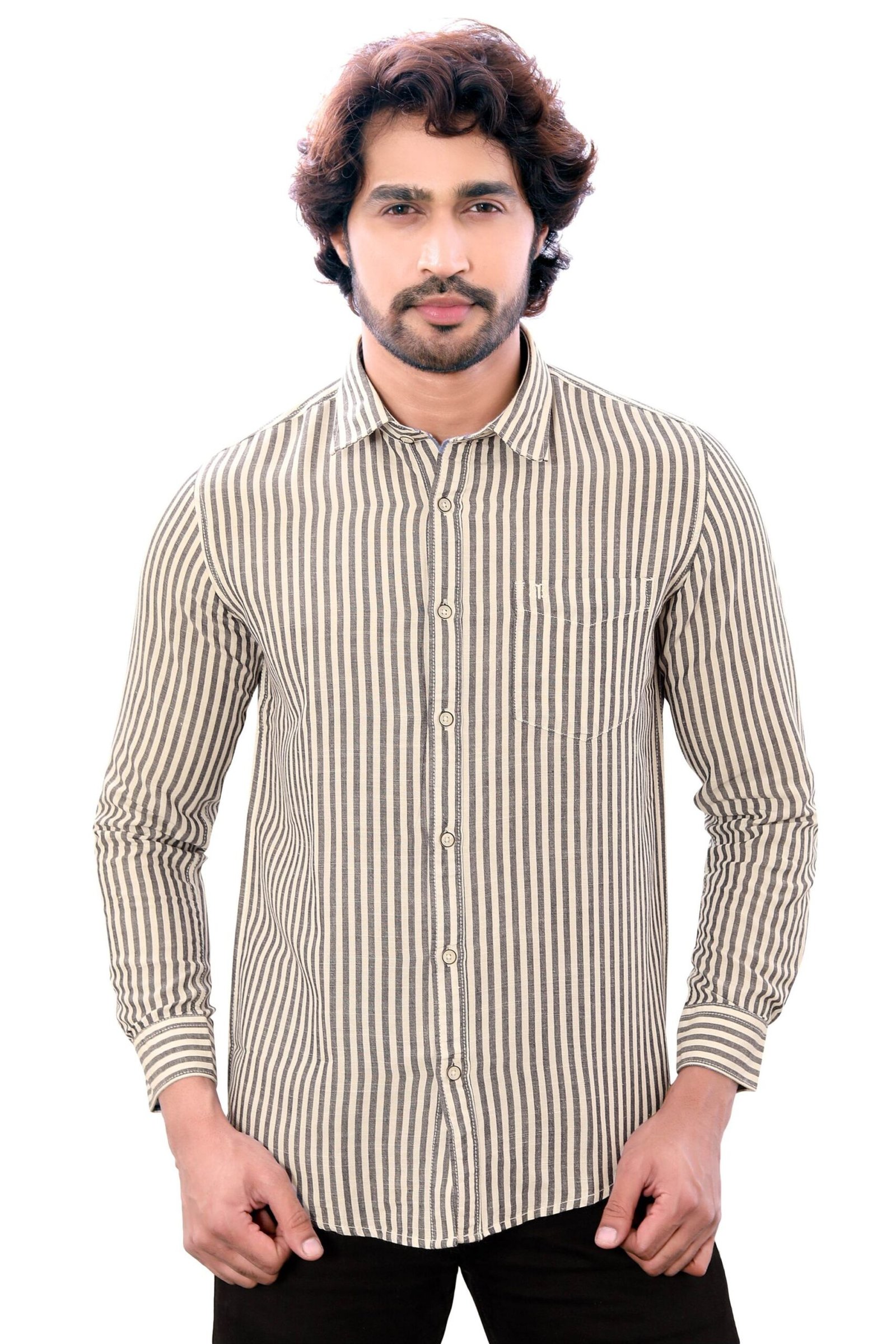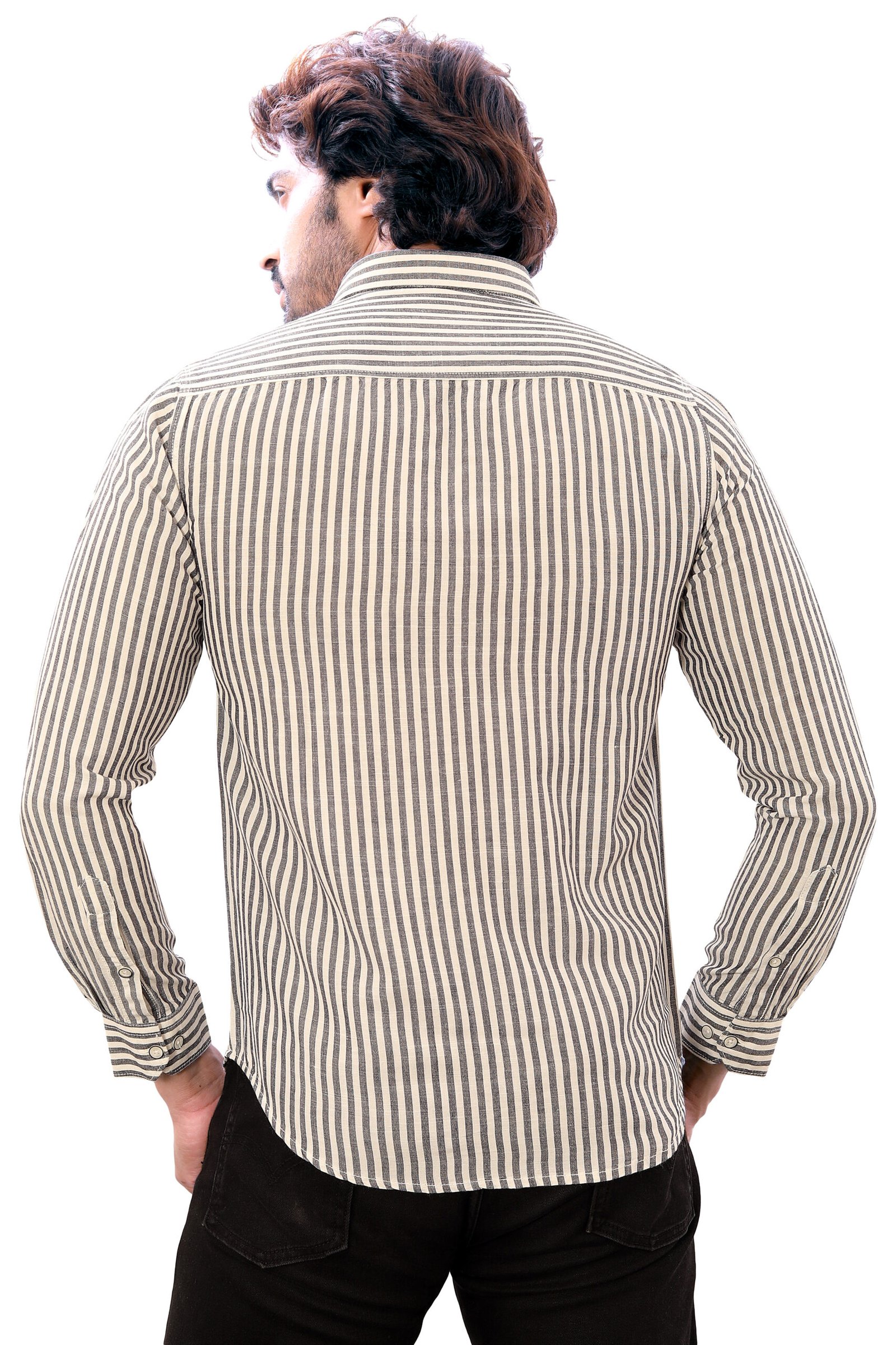 Experience effortless sophistication with the Bearberry Men’s Cotton Linen Striped Shirt — a perfect blend of comfort, style, and premium craftsmanship.