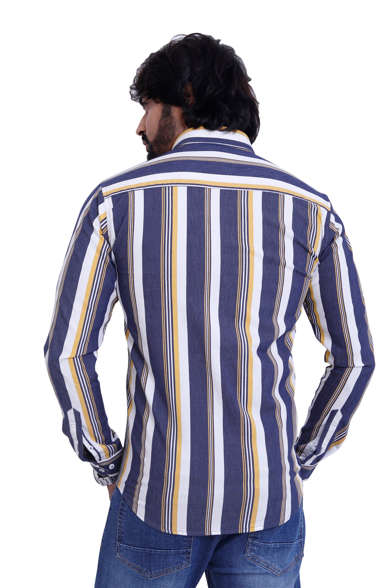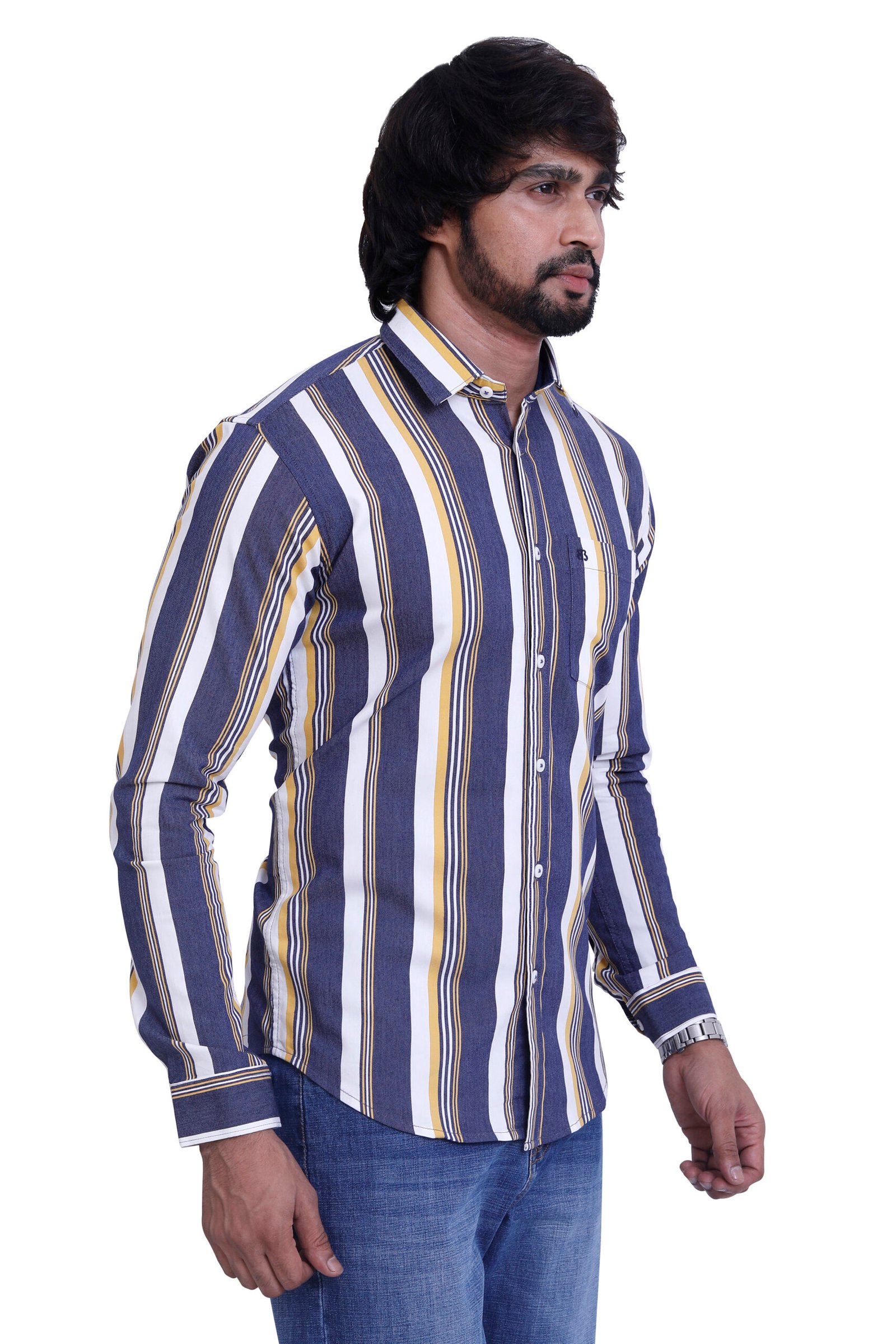 Bearberry Men’s Premium Cotton Multi-Stripe Shirt – Stylish Slim Fit Casual & Party Wear Shirt