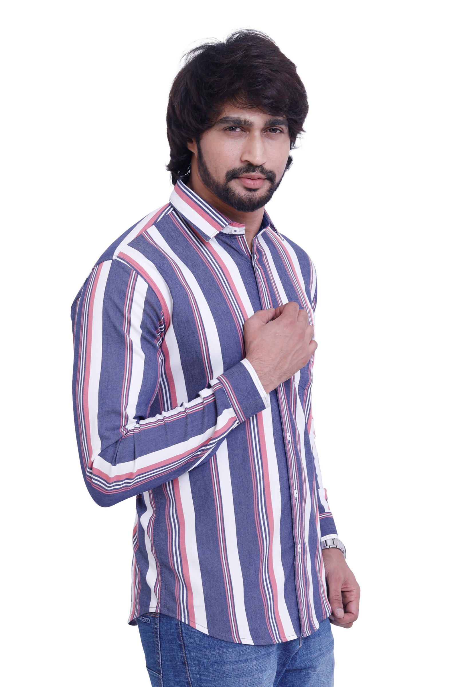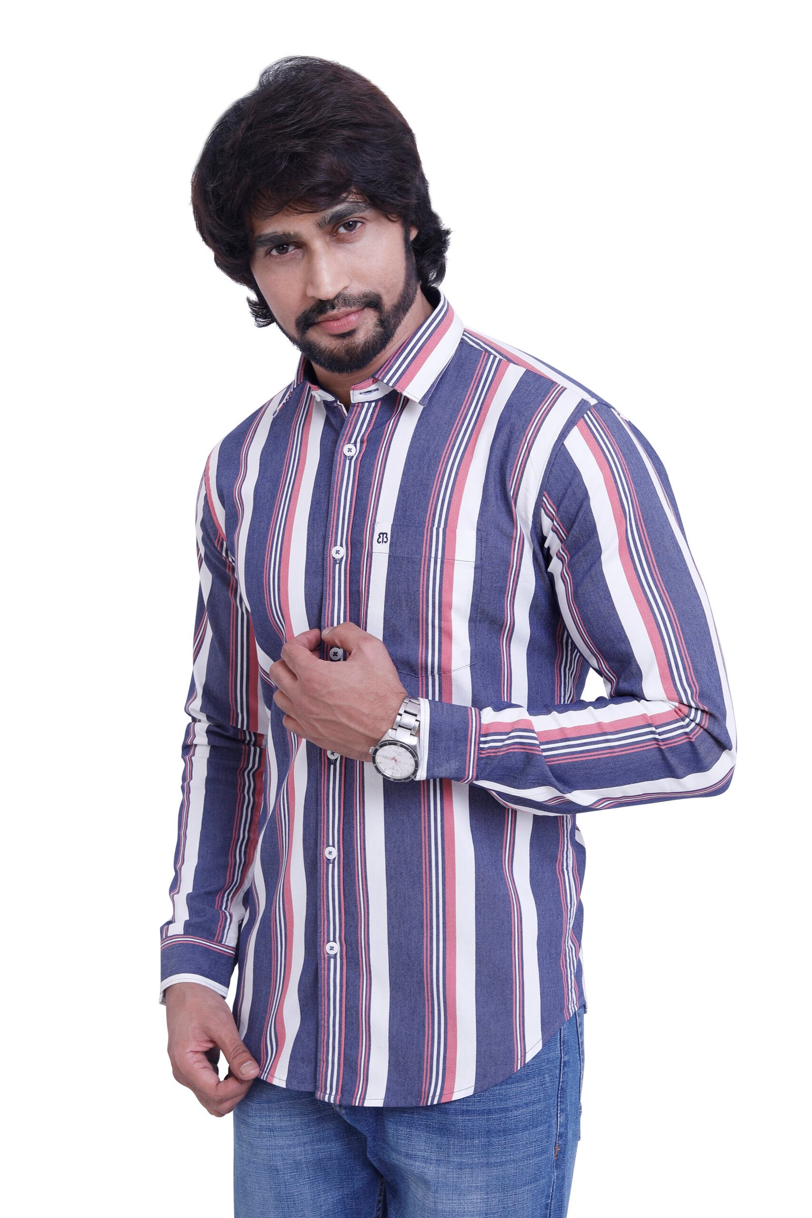 Bearberry Men’s Premium Cotton Multi-Stripe Shirt – Stylish Slim Fit Casual & Party Wear Shirt
