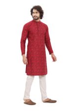 Step into effortless elegance with Bearberry’s Men’s Red Jacquard Cotton Kurta, designed for modern men who value both tradition and comfort.