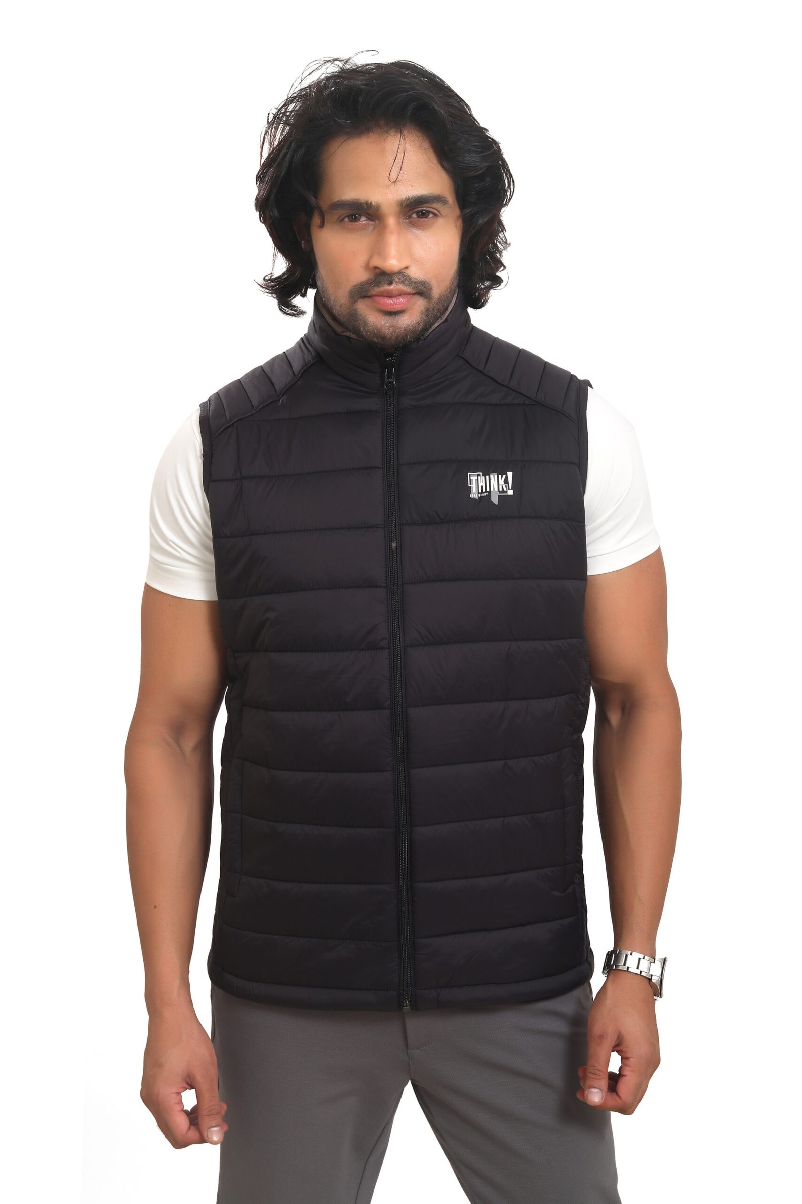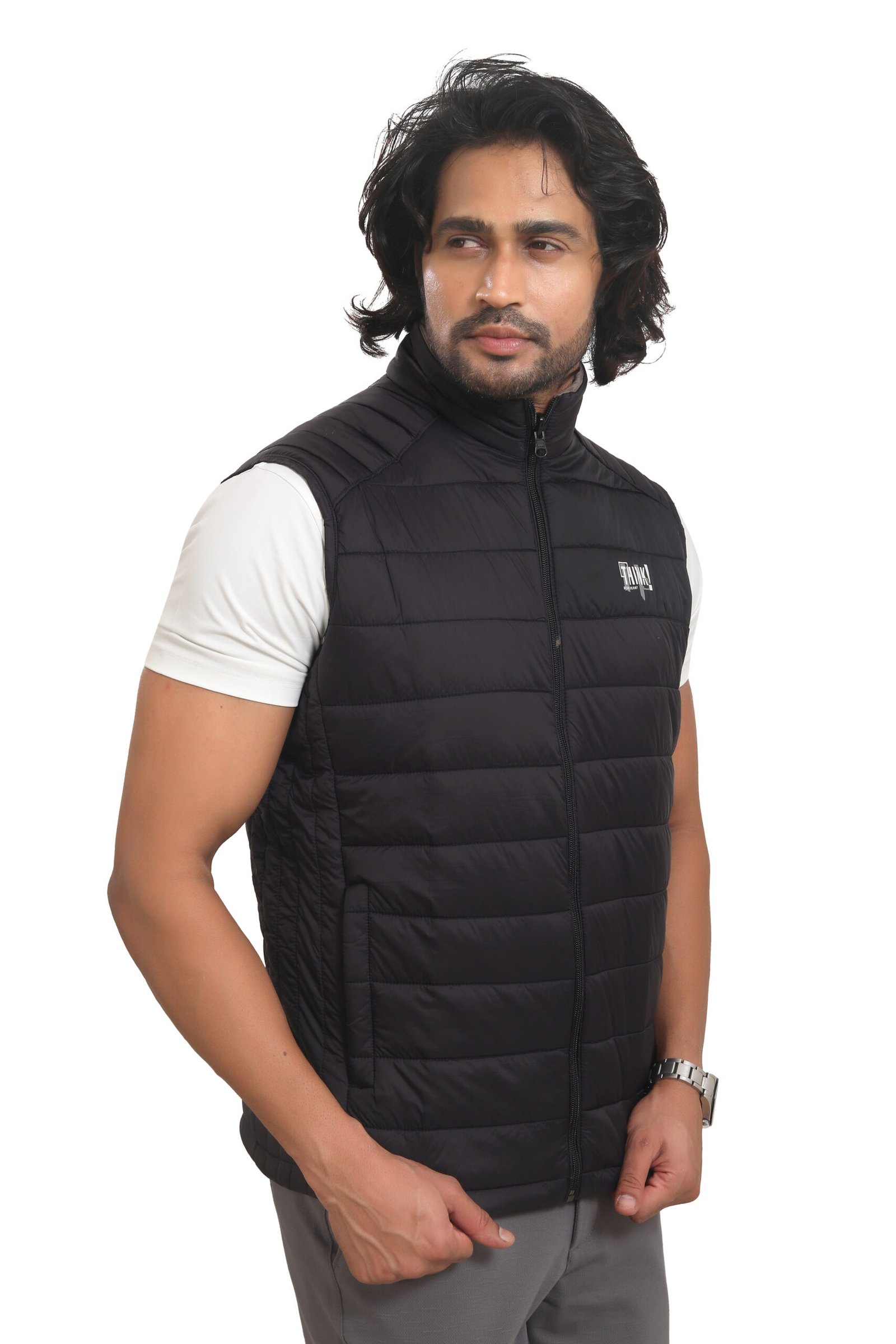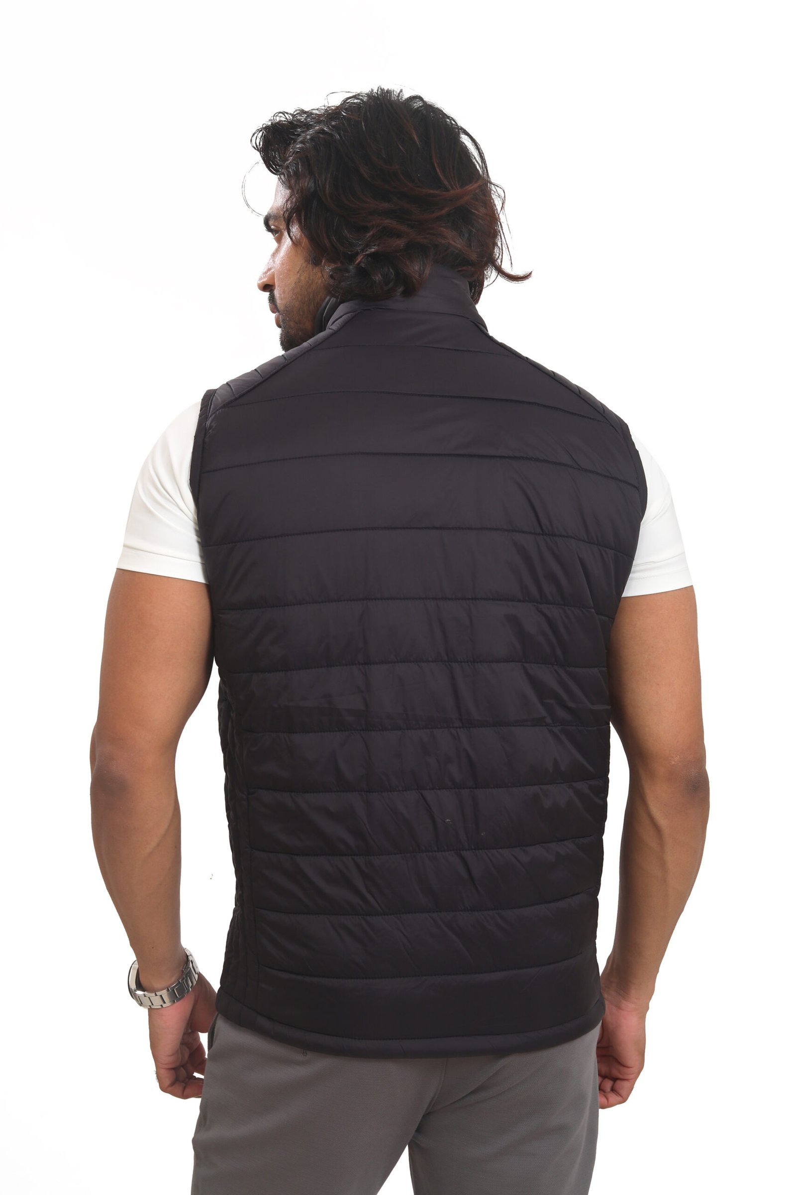 The sleeveless design ensures ease of movement, while the high-neck collar protects against wind. Pair it with T-shirts, shirts, or even polos for a premium layered look.