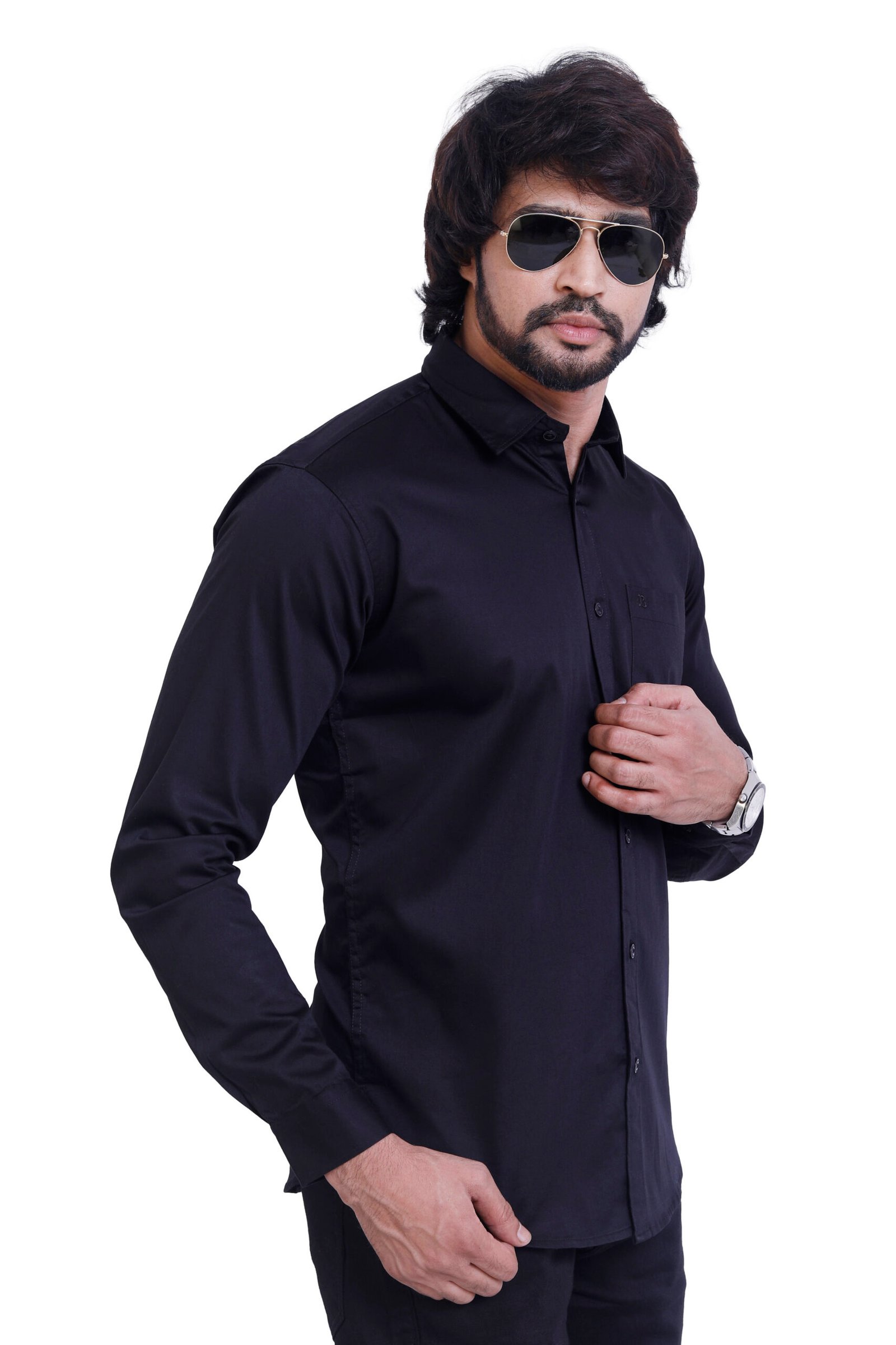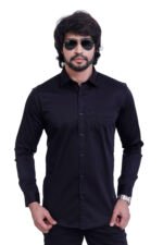 Bearberry Men’s Satin Cotton Solid Shirt – Premium Black Soft Finish Smart Casual & Party Wear Shirt
