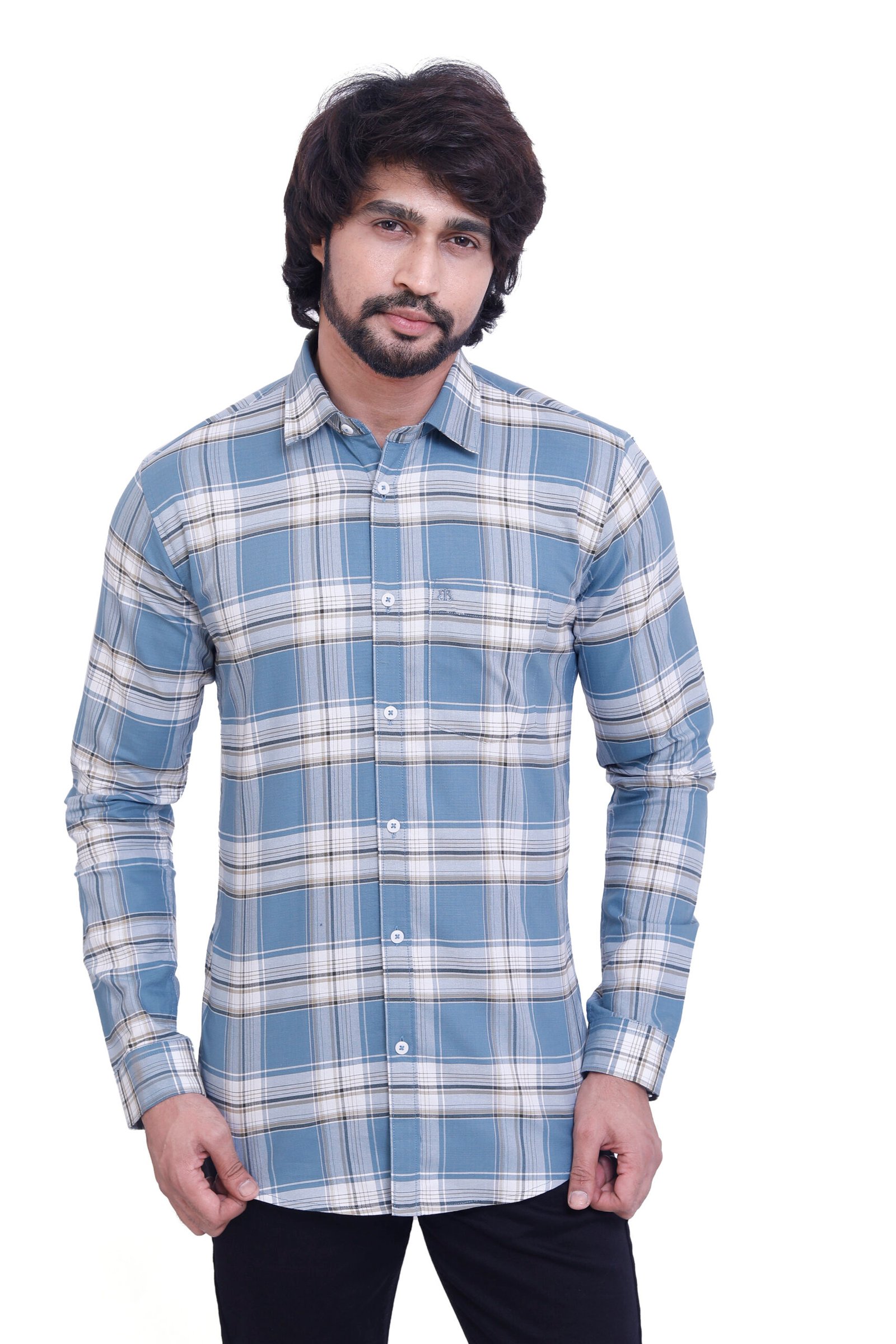 Refresh your wardrobe with this 100% cotton blue check shirt—soft, breathable, and designed for a sharp everyday style.