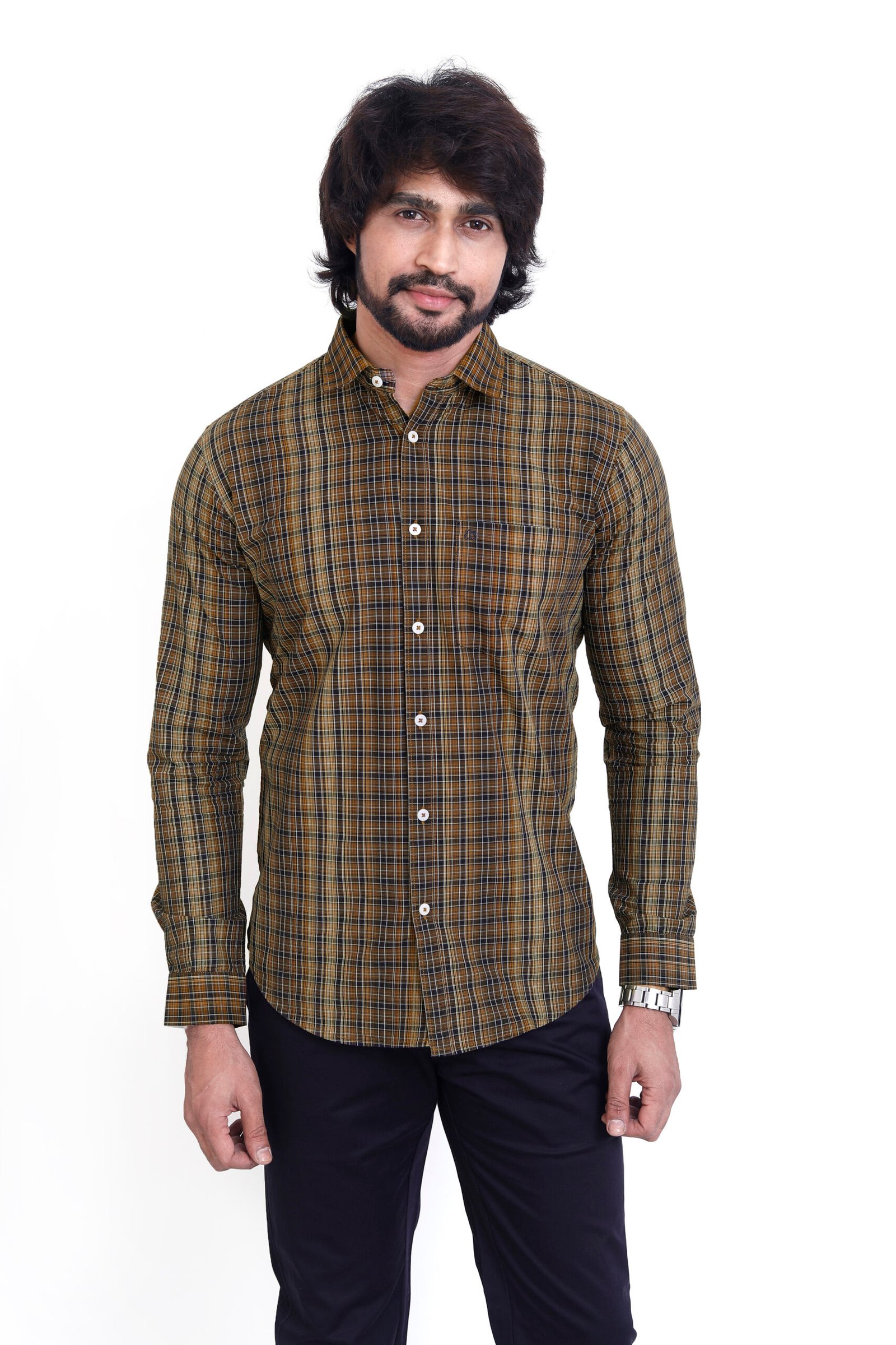 Add a warm, stylish touch to your wardrobe with this 100% cotton brown check shirt. Soft, breathable, and tailored for a sharp everyday look.