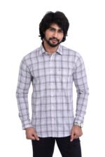 Refined and versatile, this 100% cotton grey check shirt offers breathable comfort with a clean, modern look—perfect for office and everyday wear.