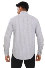 The subtle grey base with fine vertical stripes gives it a sophisticated and modern look—perfect for office wear, business casual settings, or smart everyday styling. The structured collar, precise stitching, and premium finishing reflect Bearberry’s commitment to quality and comfort.