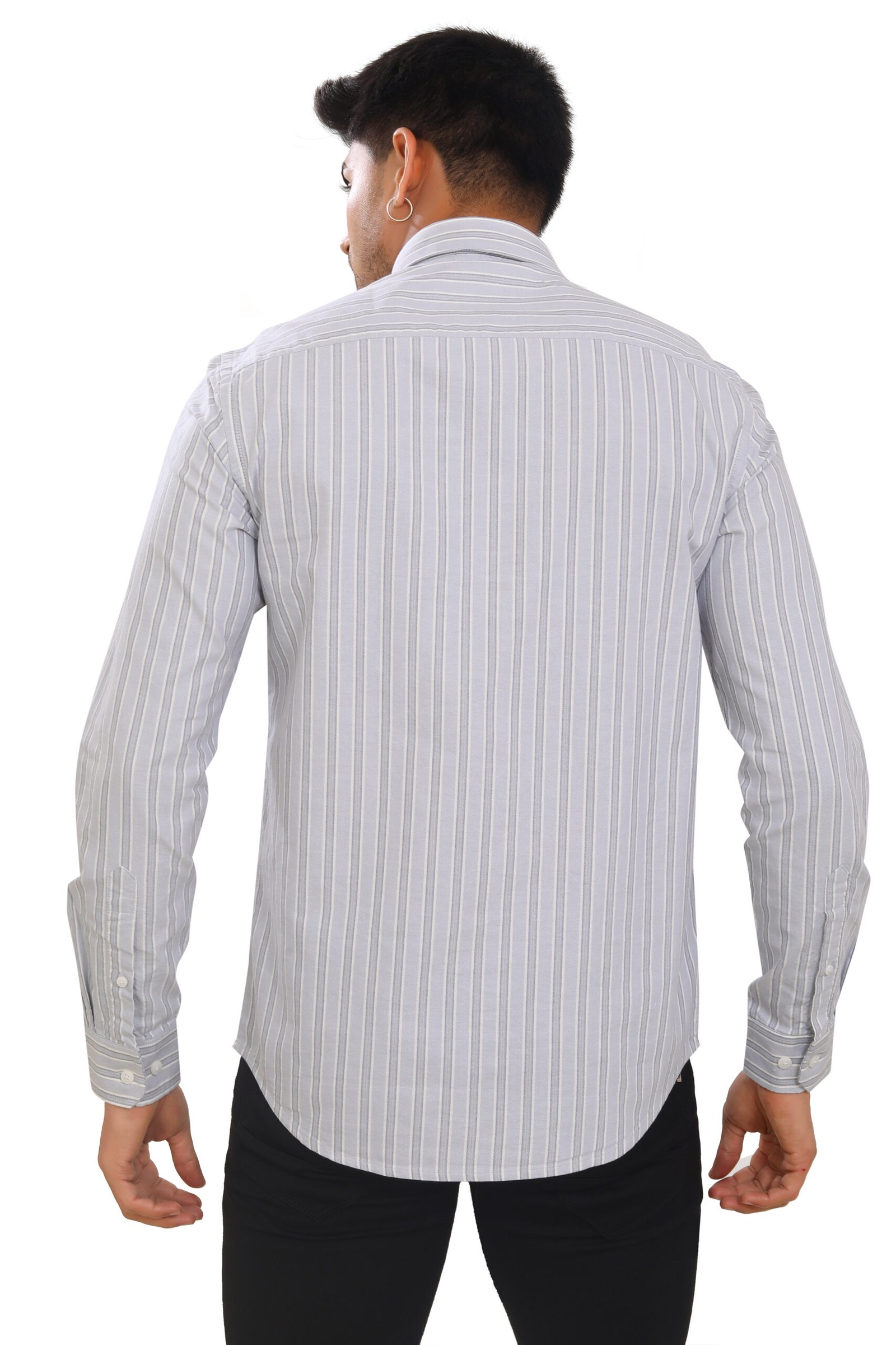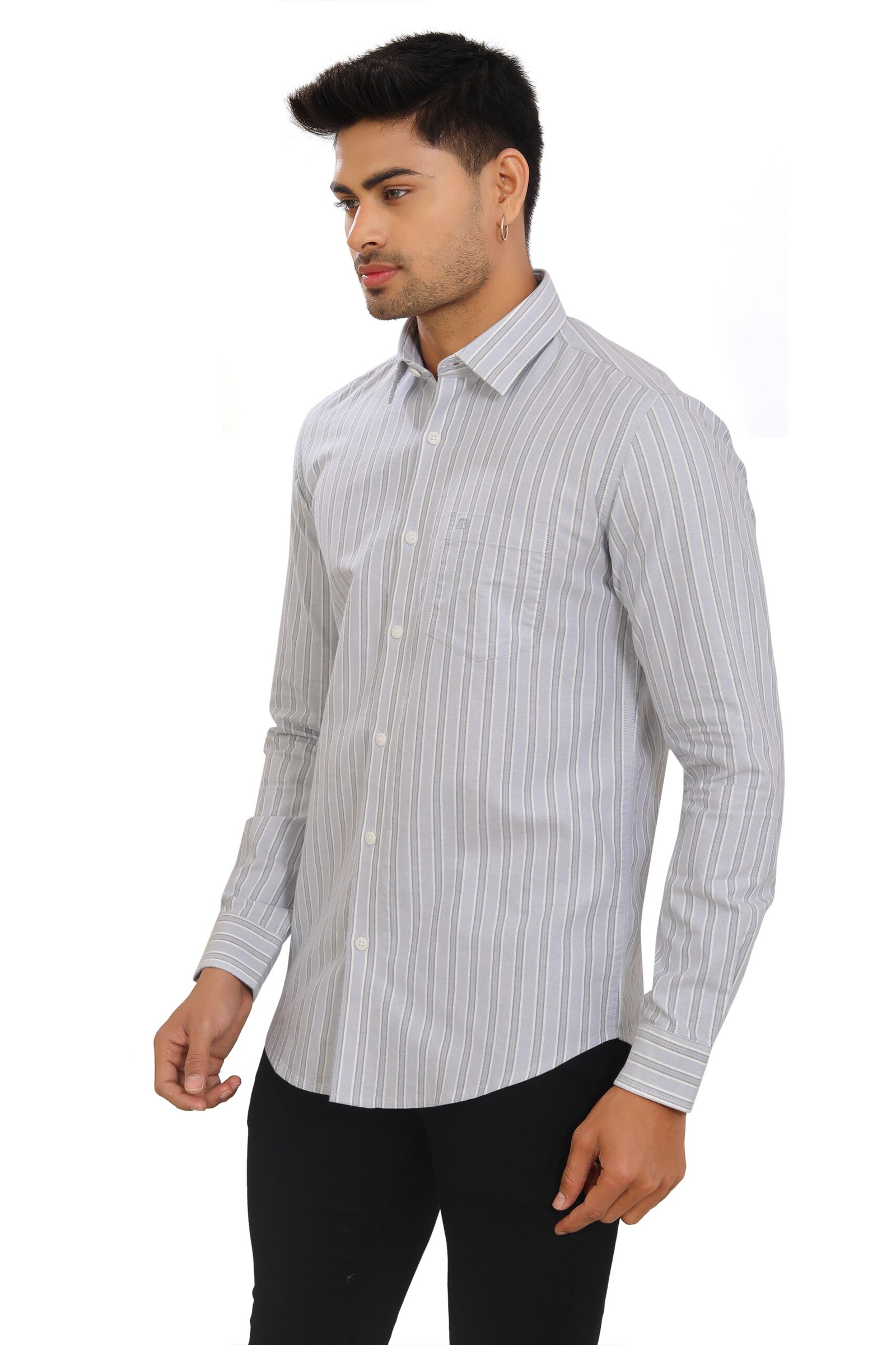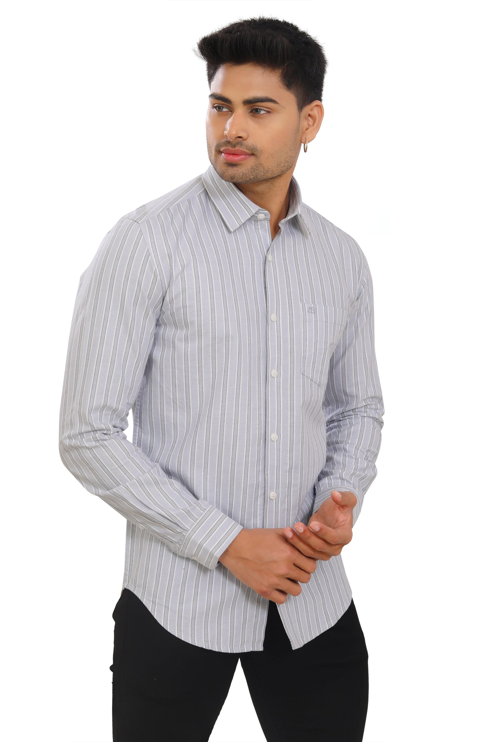 Bearberry Premium Oxford Cotton Striped Shirt – Classic Grey | 100% Cotton