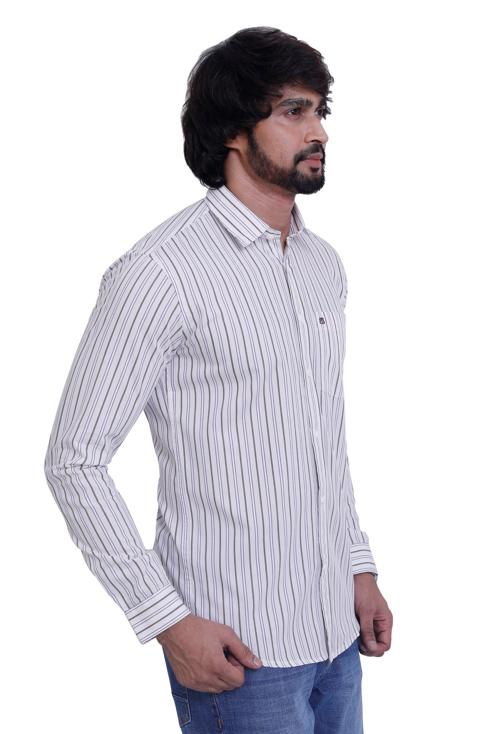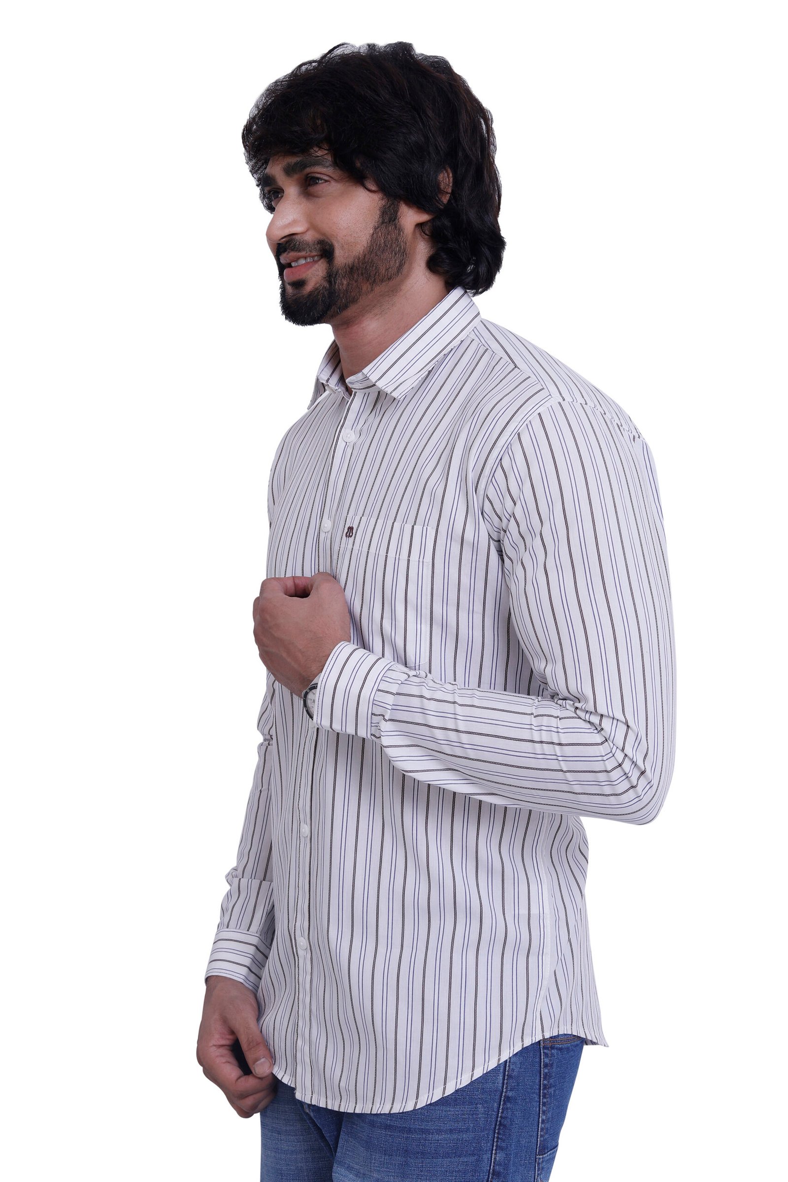 Clean, sharp, and timeless—this white striped cotton shirt is perfect for smart everyday and office wear.