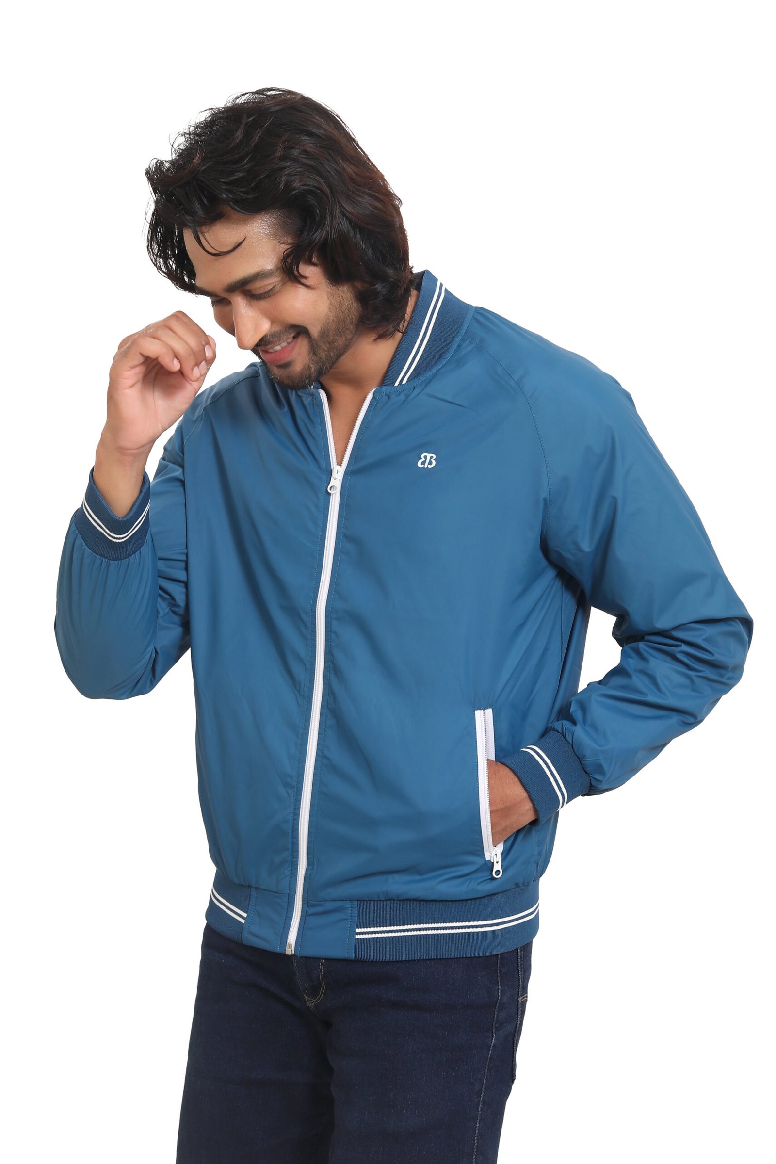 Men’s Blue Lightweight Bomber Jacket – Ultra Soft Poly Nylon Casual Jacket | All Season Wear